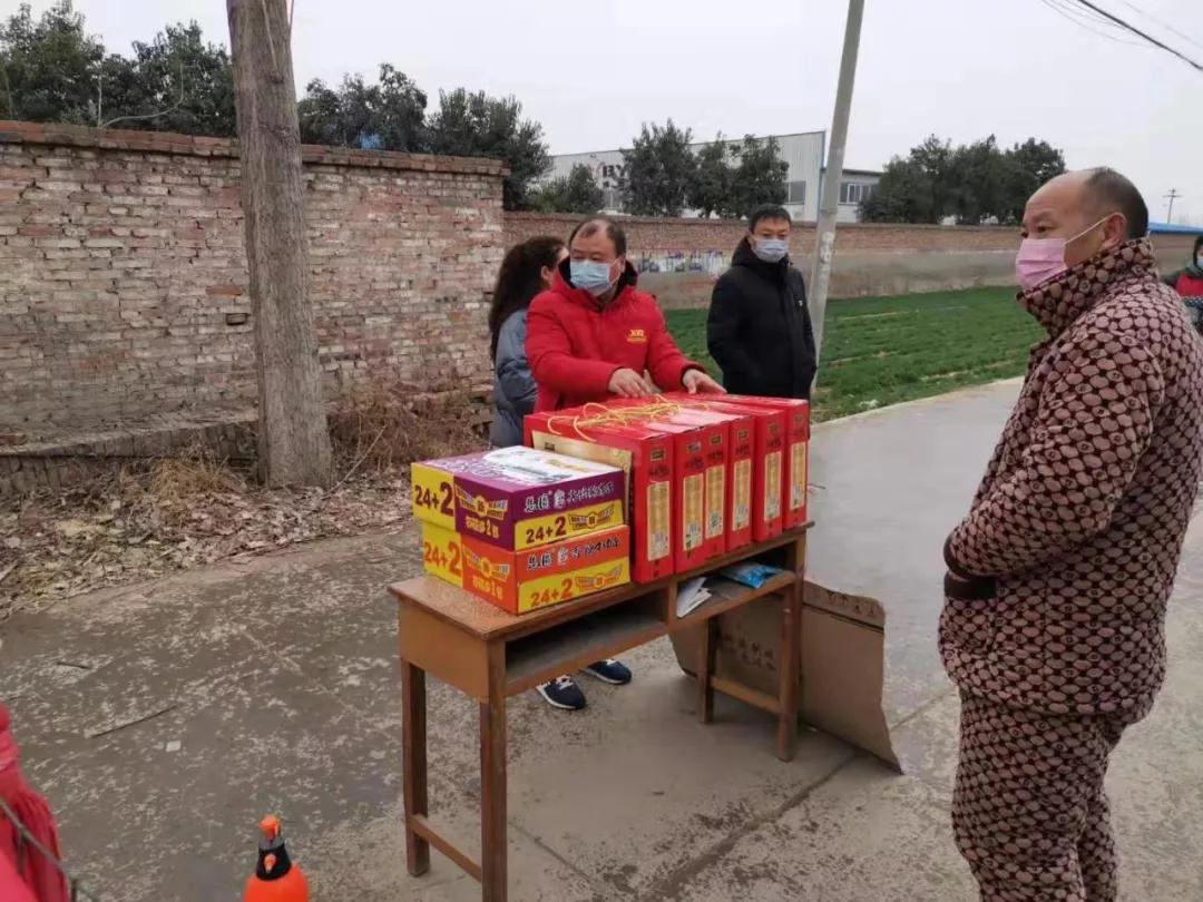 為助力新型冠狀病毒肺炎疫情防控工作,全力抗擊疫情,切實保障人民群眾身體健康和生命安全,在這個疫情防控的特殊時間點,河南旭瑞集團用實際行動積投身抗擊疫情活動中。2月5日,集團副總邱國強帶領集團管理人員攜帶熟食食品、方便面、消毒液等物品到三陽村、大聶村、中聶村、張莊村、寧郭村、北小莊等周圍村鎮看望慰問堅守崗位的村干部及村民,并對周圍村鎮即將開工的員工做好疫情的安撫工作。
