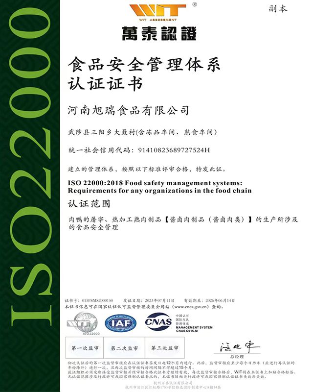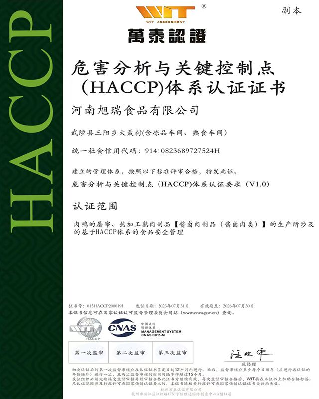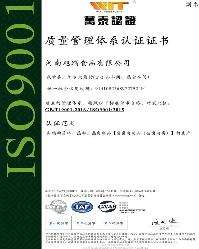 公司累計(jì)投資1.5億元,建成現(xiàn)代化屠宰加工生產(chǎn)基地,引進(jìn)先進(jìn)成套生產(chǎn)線,達(dá)到國(guó)內(nèi)領(lǐng)先生產(chǎn)加工水平。具備年屠宰2000萬(wàn)只肉鴨生產(chǎn)能力。擁有儲(chǔ)存量3000噸的智能化,數(shù)字化冷鏈倉(cāng)儲(chǔ).產(chǎn)品分別通過(guò)ISO9001質(zhì)量管理體系、ISO22000食品安全管理體系和HACCP管理體系認(rèn)證,獲得綠色食品認(rèn)證和出口食品生產(chǎn)企業(yè)備案證明。